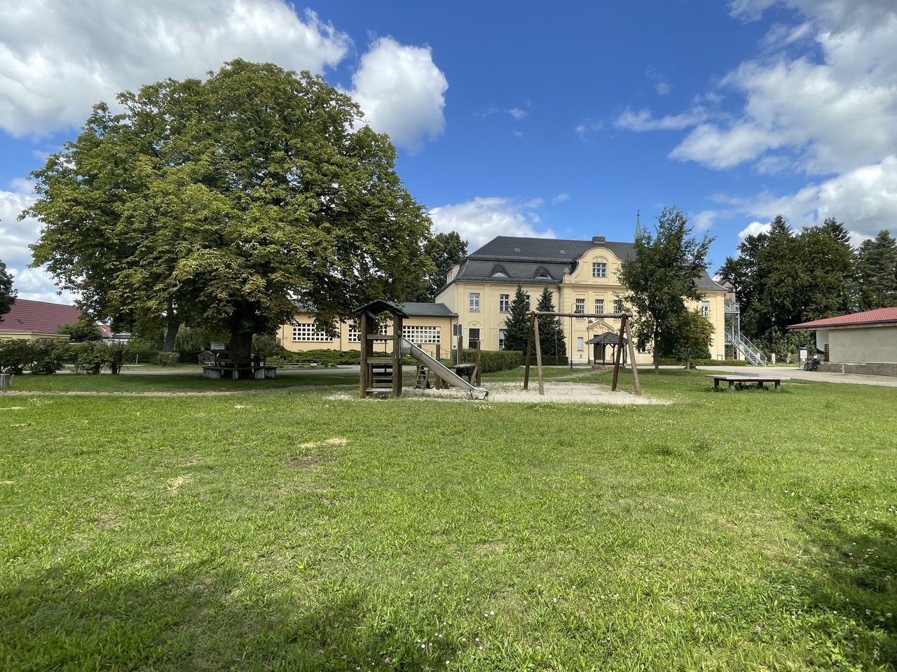 Sowohl die zugehörige Sport- und Veranstaltungshalle als auch das Dorfcafé dürfen sehr gern mitgenutzt und -gebucht werden. Falls Ihr Interesse habt und noch mehr Platz braucht, bitten wir Euch, kurz mit uns zu den Verfügbarkeiten Rücksprache zu halten, da beide Räume auch von der Dorfgemeinschaft ab und an für AGs, Entspannungskurse oder weitere Aktivangebote (zu denen Ihr herzlich eingeladen seid!) genutzt werden.